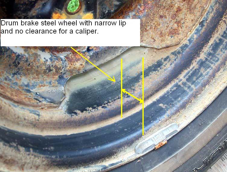 Here is a picture of the XF coded wheel showing the clearance for the caliper on a disc brake car. Note how much wider the "lip" is compared to the FC wheel...........RatPack.........