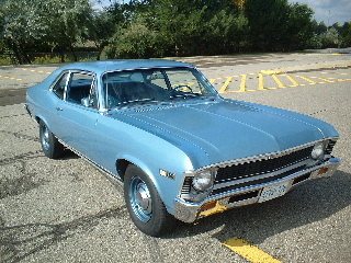 I purchased this car two years ago from an estate sale in North Carolina.The original "little old lady car,65K original miles, new seat covers, starter, shocks, leaf springs, and master cylinder. This is the most rust free original panel Nova that you will find. No patches or repairs. One older repaint that is showing its age, but quite presentable. Grotto blue with blue interior. 307 powerglide car, everything works as original. You could drive this car anywhere. Still has the original "privacy shields" (plastic underbody trim pieces that hide the subframe. You will look long and hard to find another as rust free and unmolested as this one. $14,000 or 69 Camaro or Mopar A/B body trades considered. Marc 905 335 3271
