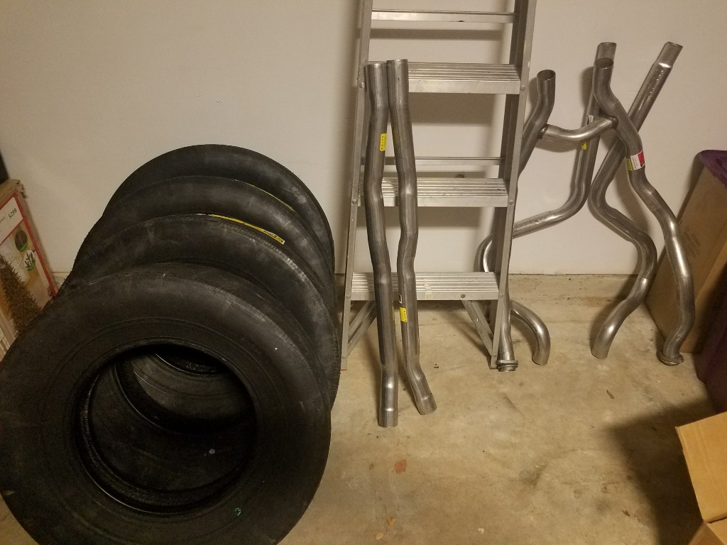 Now, you's guys know me. If I'm going to do this into a Hero Bullitt look-a-like, gotta do it right! So in the parts bin are Firestone G70s, stock 2" pipes through the resonators only with straight pipe out the back, 67 Grille, no emblems on the outside, covered back up light holes on the rear valance, blacked out gas cap, 67 Shelby GT500 steering wheel wrapped in black leather, Hurst shifter.
