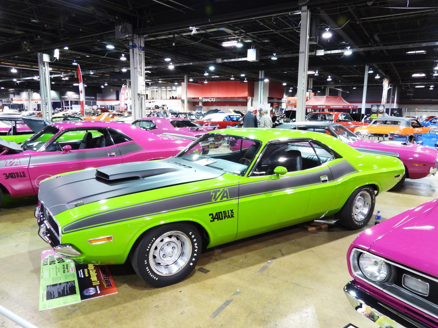 This Panther Pink 70 Challenger T/A is a 4-speed car. Steve Bernas had this car at the show in the Spring Fever Invitational.