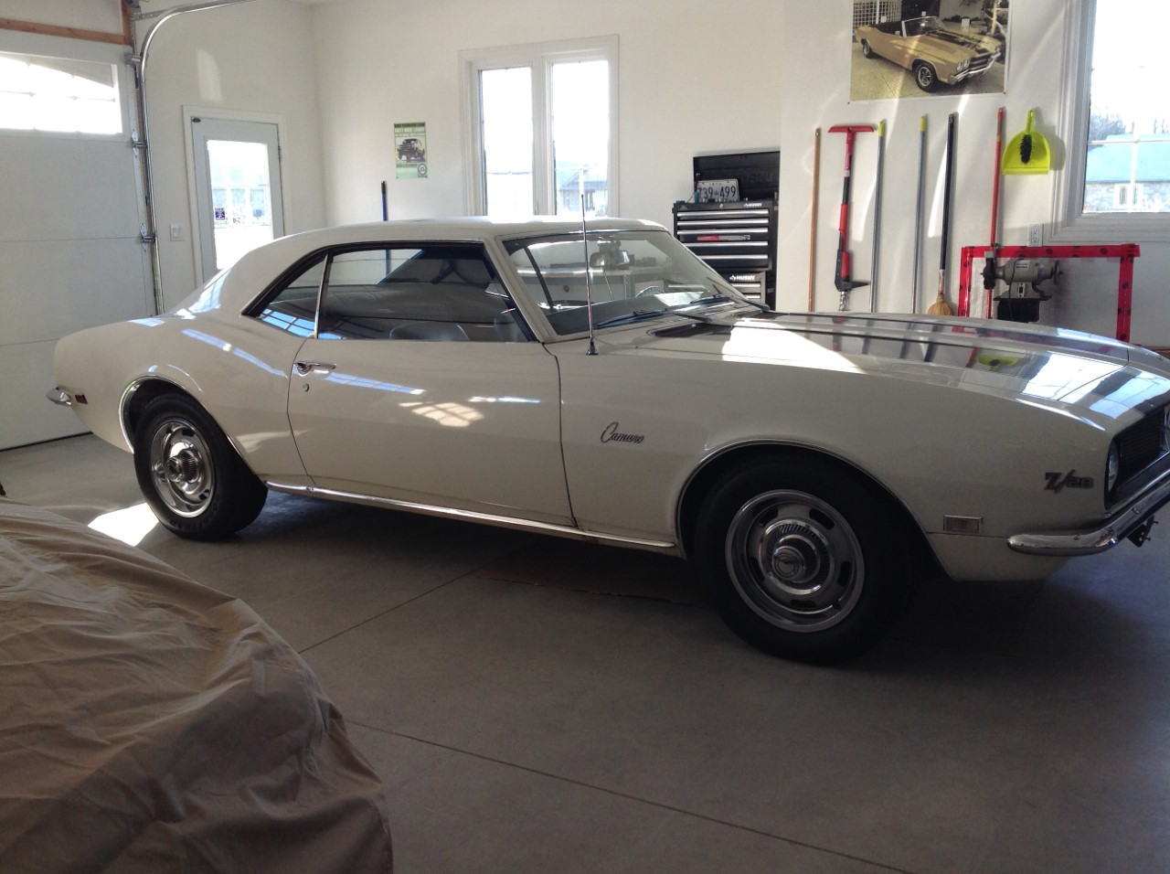 selling my 68 z28 survivor 70% original paint all original drive train never been out of car colour white with mint mint blue interior all mint original glass no chips no scratch's on glass. chrome is mint. all original paint 5 DF rims including original spare tire and jacking this z28 was lady driven from 1971/2009 she bought this z28 from NICKEY have all docs was very well look after.nothing missing all parts are correct dated drives very smooth.call me 519-509-0622 or send your email i will send pics sorry do not know how to post pics.