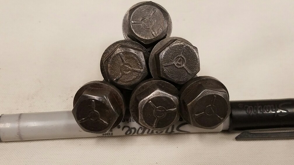 Complete set of Six Original restored flathead flanged A head marking bell housing/transmission to block bolts. Excellent restored condition. Very nice pieces...These normally sell for $90 a set. SOLD Sale price $75 shipped to the lower 48 if paid with PayPal friends and family. These bolts were also used on Big Block intakes and engine lift brackets for small blocks. SOLD