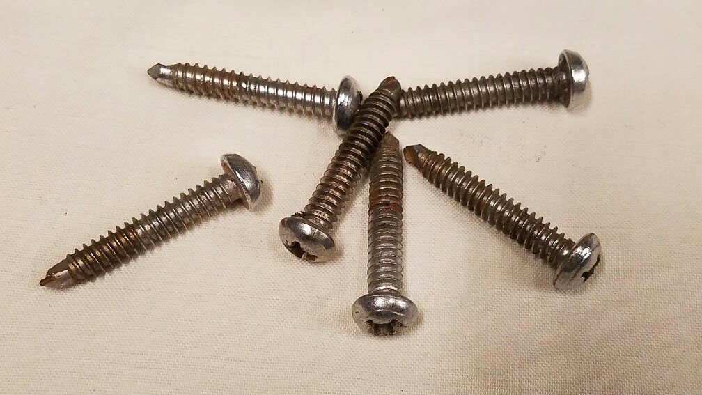 Original chrome armrest screws. $4 each plus shipping. Free shipping on 6 or more. The heads on the reproductions are not shaped like the originals.