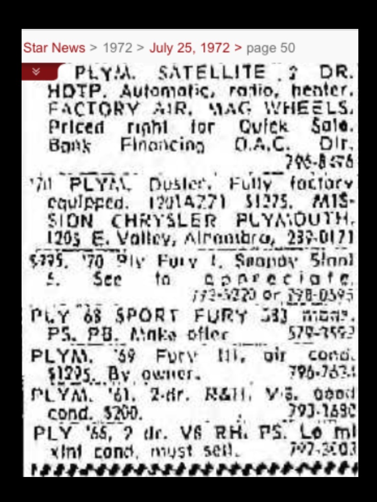 He has an extensive list on 71 Hemi 'Cuda's. Do you have the Broadcast Sheet? |