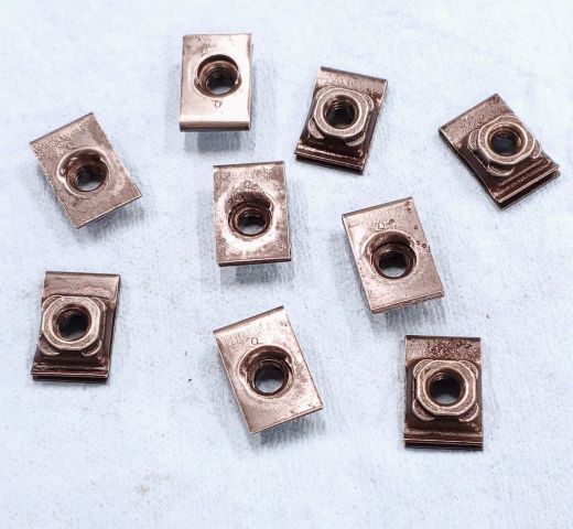 9 original front end sheet metal 5/16 18 U nuts with P stamping.$40 period PPFF ************SOLD************