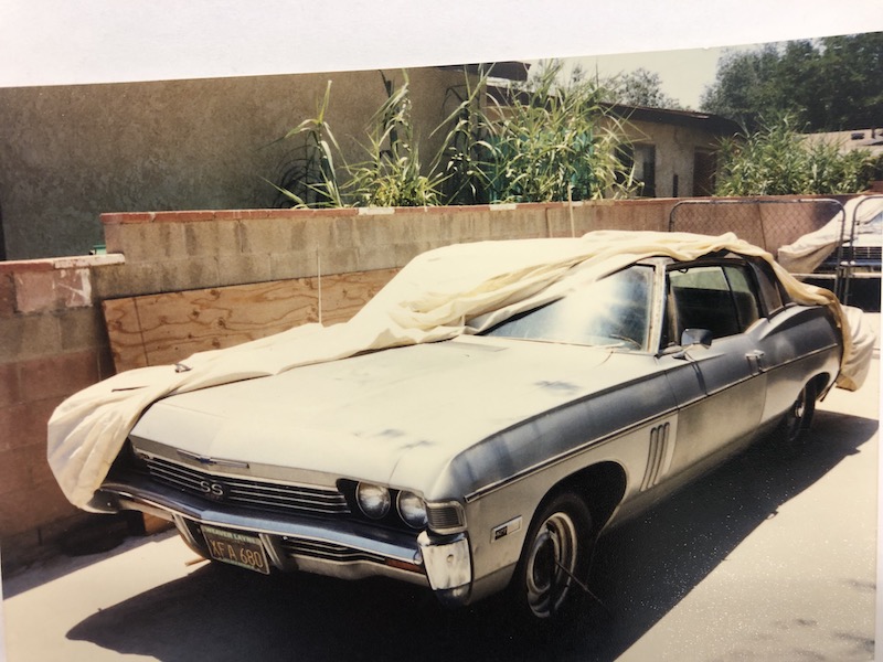 '68 Z24 Custom Coupe (notch back) Seafrost Green black buckets, NOM, TH400 3.07 open rear, no a/c. Sold new in Alhambra CA. NFS! This pic is from his old place, taken 1990. That's the blue convert in the background. I didn't't take any pix on more recent visits. |