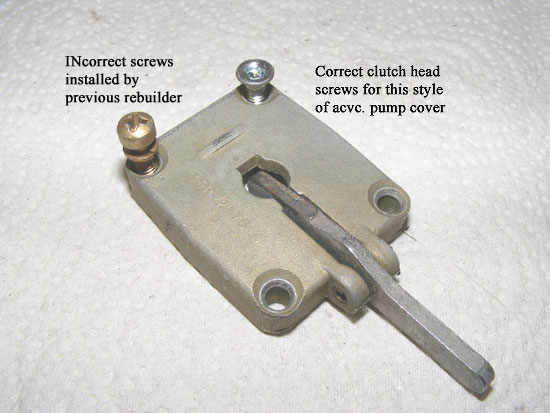 Next up was the accellerator pump cover. Whoever rebuilt the carb previously must've lost the correct clutch-head screws that secure this particular style of cover, and they replaced them with conventional Fillister head screws.