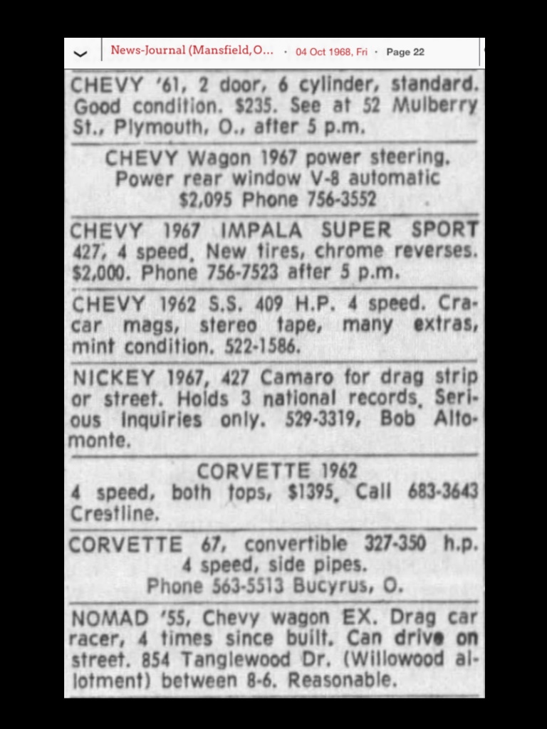 ----Wouldn't a "Mickey" Camaro have a small block? Just askin........Bill S