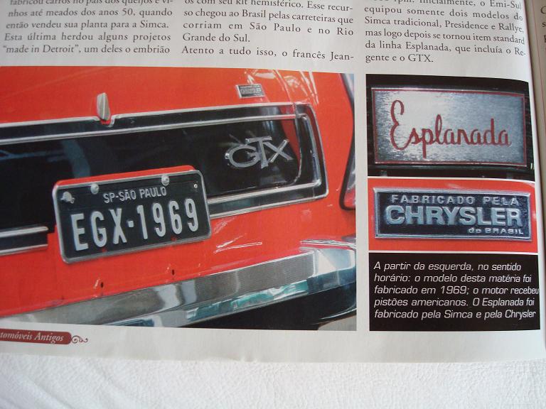 I purchased this collector car magazine here in Brazil and came across this article...I wish I understood Portuguese a little better, but from the jist of this article...Chrysler, Ford and Chevrolet were all involved in this car coming to market here in Brazil...it is a 1969..and it is indeed a GTX...it is indeed a 4-door..and it is indeed a Hemi(although I dont believe it is a 426)...atleast it doesnt look like one to me...and like I said before, according to the article, these hemis were venomized by Zora Duntov himself....unfortunately the article speaks of cubic centimeters...not cubic inches, so I dont know if it is even a 392...can anyone tell by the pics...I believe the GTX emblem is the same emblem on the US versions(correct me if I am wrong)... unfortunately, the car isnt anything like the US versions of the big mopars which really look cool...I think this car is not so great looking(although I like the stripes and emblem treatment, actually I think its pretty ugly)...too many doors!!! he-he-he