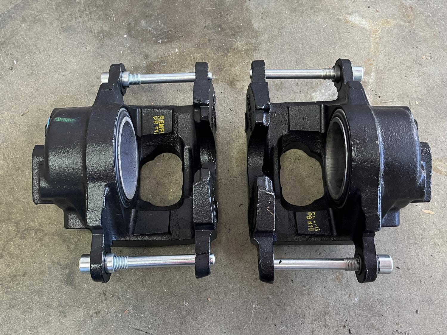 When I moved, I temporarily stored the rebuilt calipers in those ubiquitous black totes with the yellow lids... ...and it turned out to be for longer than I had anticipated and well, it has been proven that those things are not water proof or even a little water resistant it seems. The bins leaked and got a little water in them and then they continued to accumulate condensation while stored and the calipers have been water damaged. Some worse than others but all should now be considered cores that will need a (very likely minor) rebuild or good cleaning... I had a few stored elsewhere and they are still fresh and rebuilt but most of them are now very good quality cores unfortunately... I'll adjust the pricing for each single caliper on this ad, plus shipping. I'll sort dated pairs out and begin to list them in their own ads soon. As the song goes, I blame it on the rain... Anthony |