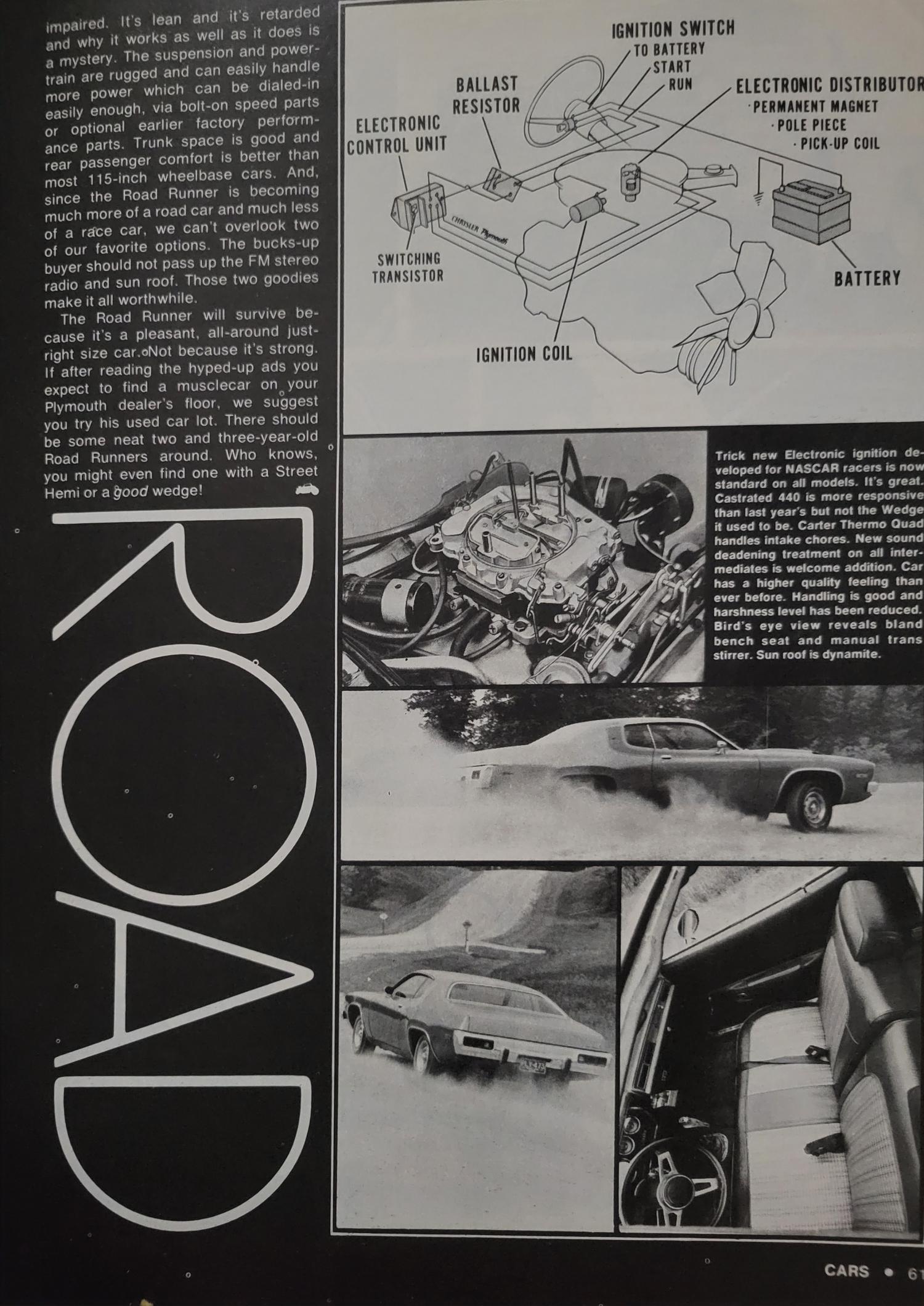 1973 Plymouth Road Runner 440 4 Speed Road Test, Hi Performance Cars January 1973