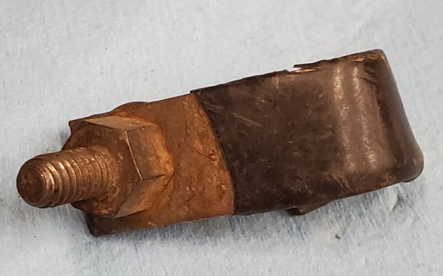 Small block oil pan battery cable clip stud and nut. $20. PPFF (X3)