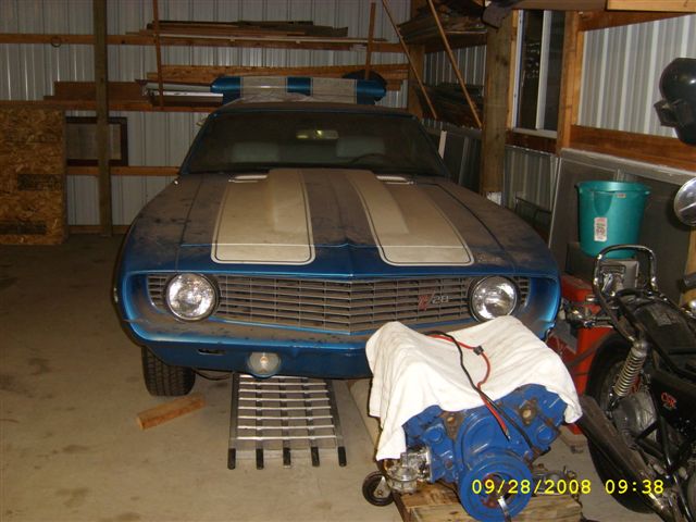 I went and looked at a 1971 camaro for sale and I could not believe what this guy had buried in the back of his barn, he told me he bought this car in the early 80s and it leaked oil badly so he yanked the engine and never put it back in, I saw original parts all over the garage, the intake, carb, air cleaner, valve covers,and such, he claims the engine is the original numbers matching engine and is going to dig it out, (he has quite a pile of engine blocks) the trans is still hanging under it, it didn't have holes in the hood for emblems so I am not sure if it came with the cowl induction or not, it does still have the rubber bumper jack and the correct rims still on the car,34000 miles, the 71 z28 also from berger was a project he had bought for his son in the early 90s and believe it or not he pulled the engine (non numbers)but the m21 is numbers and it has 4:10s original silver and black, i will have to keep you posted on the 69, just thought I would give you guys a look see, they are very cool to look at when they are still in there cave,