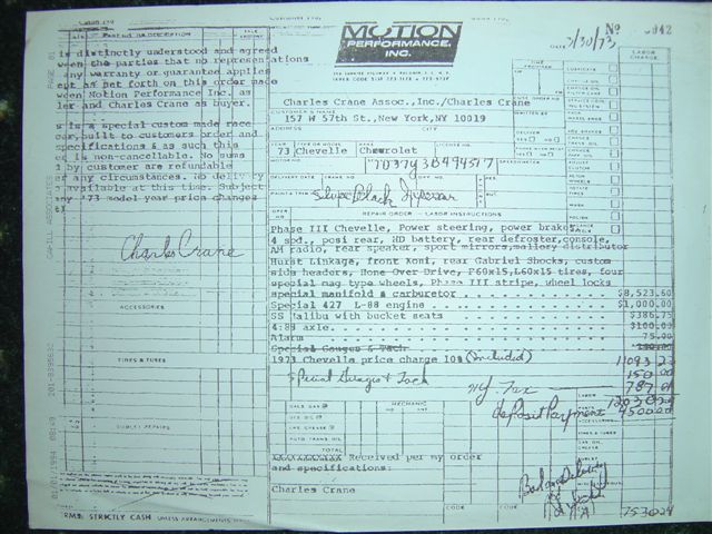 Full paperwork including a letter from Joel Rosen & correspondence between he and the original owner as far as what parts he wanted to use and there cost.