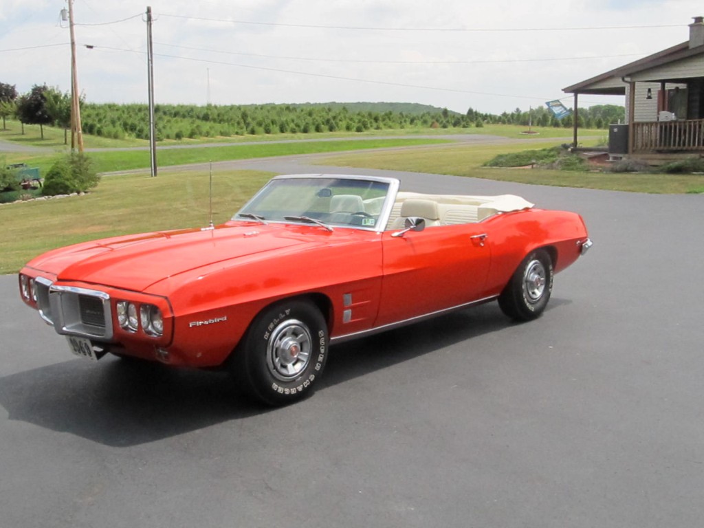 Here is another amazing survivor car that has come out of the wood work,44,000 orig mile 69 firebird conv 350, 4spd, spec paint carousel red ,white top, white interior untouched ,unmolested car with most orig paint and 100%orig interior.This is one of the most orig cars i have seen with its orig belts,hoses,shocks,plugs,wires,conv top,trunk splatter,wheels with orig space saver and jack equip ,runs and drives great options are p,s pwr top,console, buckets, tinted glass,spec paint,4spd trans,350 eng, . I have orig p.o.p ,broadcast sheet and phs.The car will be going down south in a few weeks so i thought id post it here to see if anyone local wanted to insp it... will be asking $32,500 obo cash talks.thanks 570-854-0896.