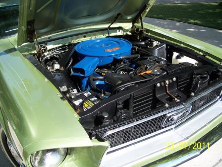 I am going to copy Don's description and past it below. It has had one repaint, as described below. I will attempt to post pics, but I am not so good at posting. May be asking one of you for help. Here is Don's description: Don Schuchardt’s ’68 MUSTANG DESCRIPTION SUMMARY <span style="font-weight: bold">History</span> We bought this Mustang in 1988 from the original owner’s estate. The odometer showed 77,500 miles. The documentation includes the original owner’s purchase, registration, operating and maintenance papers, booklets, etc,- in perfect condition. I have a documentation file of all the restoration, upgrades and repairs and appraisals which I’ve done and had done since owning the vehicle.The information below covers the important applicable description and data for the Mustang. The Mustang has been garage-kept and never ran in inclement weather since restoration. The valves were ground at about 100,000 miles.It still runs great, and doesn’t use oil or smoke. The engine is quiet. The oil filter and oil (Valvoline premium) have been changed at about every 2,000miles. The odometer now reads about 23,300 miles. Regular maintenance and repair have been performed as needed. <span style="font-weight: bold">Mustang Description</span> VIN (Warranty number): 8F01C154714 – both door panel and instrument panel tags agree. Vehicle Data: 65 I 2G 06B 652 W C, w/interpretation as follows: Body: 65A = 2 door hard top Color: I = Lime gold metallic Trim: 2G = Light ivy gold & medium Ivy gold vinyl Date: 06B = February 6 DSO: 65 = Oklahoma City, OK Transmission: W = C-4 Automatic Engine: C = 289 2/V Appraisal Summary General Condition: Interior – Above average Exterior – Above average Underecarriage –Average Engine – Above average Engine Compartment – Above average Trunk – Average Drive-line – Above average Factory Options: Vinyl top Delux interior SunX glass (tinted) Remote controlled driver-side mirror Matching non-remote controlled mirror passenger side In-dash air conditioning Power brakes Power steering 3-row heavy duty radiator (upgrade) Rubber Pony floor mats – front After Market Adds In-dash AM/FM/Cassette stereo w/ front & rear speakers Electric quartz clock Trunk light * Military spec undercoating * Burglar alarm – needs repair Electronic ignition * Door protection trim * Mud flaps * Suspension grease fittings * Note: * indicates not included in appraisal. <span style="font-weight: bold">Appraisal</span> Comments: “I find this vehicle to be in excellent mechanical condition. This vehicle is ninety percent restored to factory original. All areas of this vehicle are in solid condition.”The total appraised value as of May 19, 2008 was $16,850. Extras I have several additional Mustang parts and related items which I’ve collected and would also sell at a negotiated price. They are as follows: 1) Original AM radio 2) Collection of Mustang Monthly magazines – about 25 years, excellent info source 3) Original drive shaft & U-joints 4) Two Mustang shop manuals 5) Original shock absorbers – usable 6) Original A/C compressor – replaced with new 7) Two extra (original) wheels w/tires – spare tire is original 8) Several cans of A/C refrigerant Freon 12 9) ’68 Mustang trailer hitch 10) Original driver side mirror 11) Collection of Mustang miniatures 12) Miscellaneous – new fuel pump, shop wall plaques Price I will sell the Mustang for the currently insured value of $17,000. My insurance company (Hagerty) feels that my Mustang has appreciated in value since the 2008 appraisal and supports the currently insured value of $17,000. Contact ![]() Now, here is my attempt to post pics.
