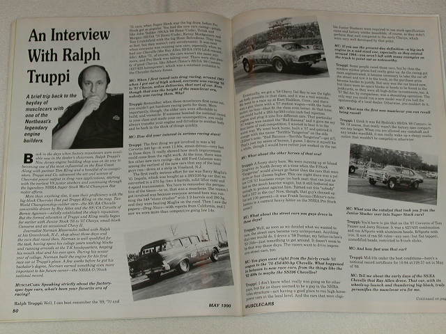 4-1987 11-1988 2-1989 1-1990 Just some of the notable article's: Truppi-King Chevy Profile Drag Race Supercars LS-6 Ragtop Linda Vaughn and Hurst Olds 20 years of greatness L-78 SS 396 Nova's Dave Strictler and his Old Reliable Racers Hot 427 Chevy's road test 69 ZL-1 Rarest power package 63 Z11 Impala Million dollar light weight Ford collection COPO 427 Chevelle Dave LeBrun's 69 427 Camaro A/SA $45 free shipping to the lower 48 |