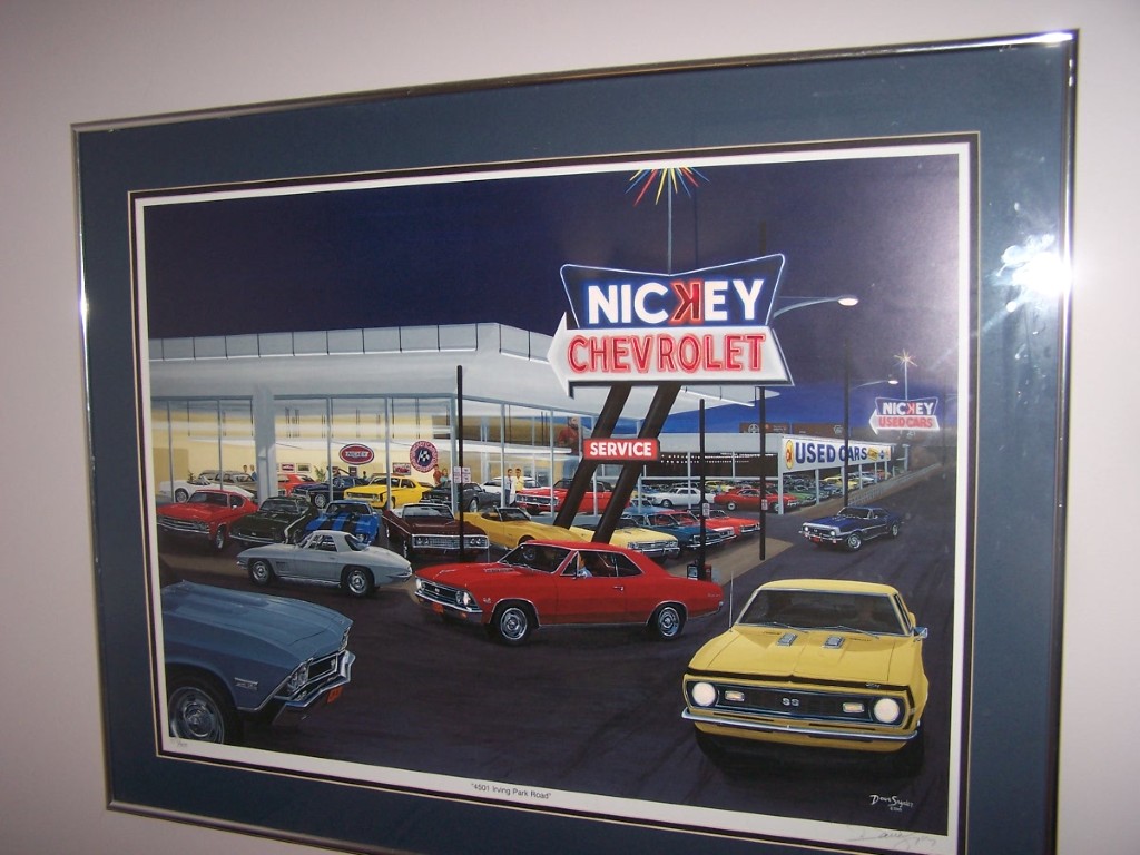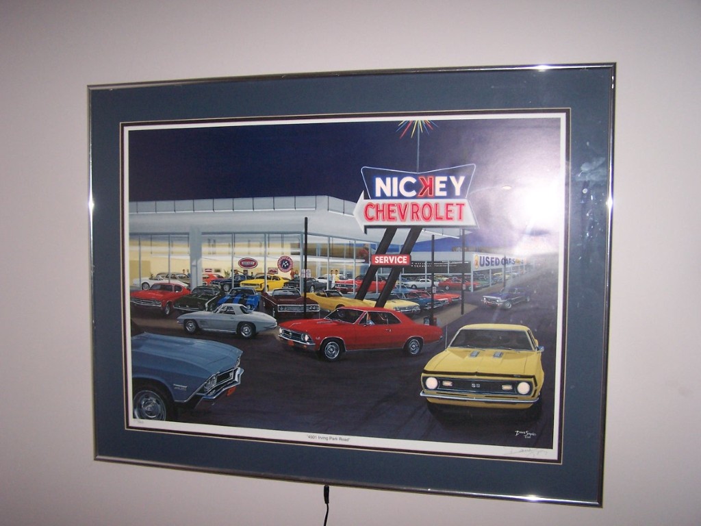 # 913 / 950, Framed and under glass, this limited edition print lights up and the Nickey Chevrolet sign flashes. $ 600 shipped Jim 224 400 0535