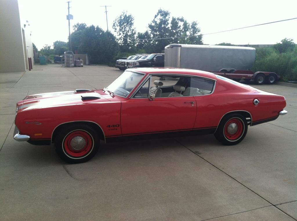 Very cool color combo 1969 Plymouth Cuda 440 M-Code Red(R4) with White interior auto console fully restored to #1 standards, Original drivetrain with a correct trans and comes with a buildsheet. $60k