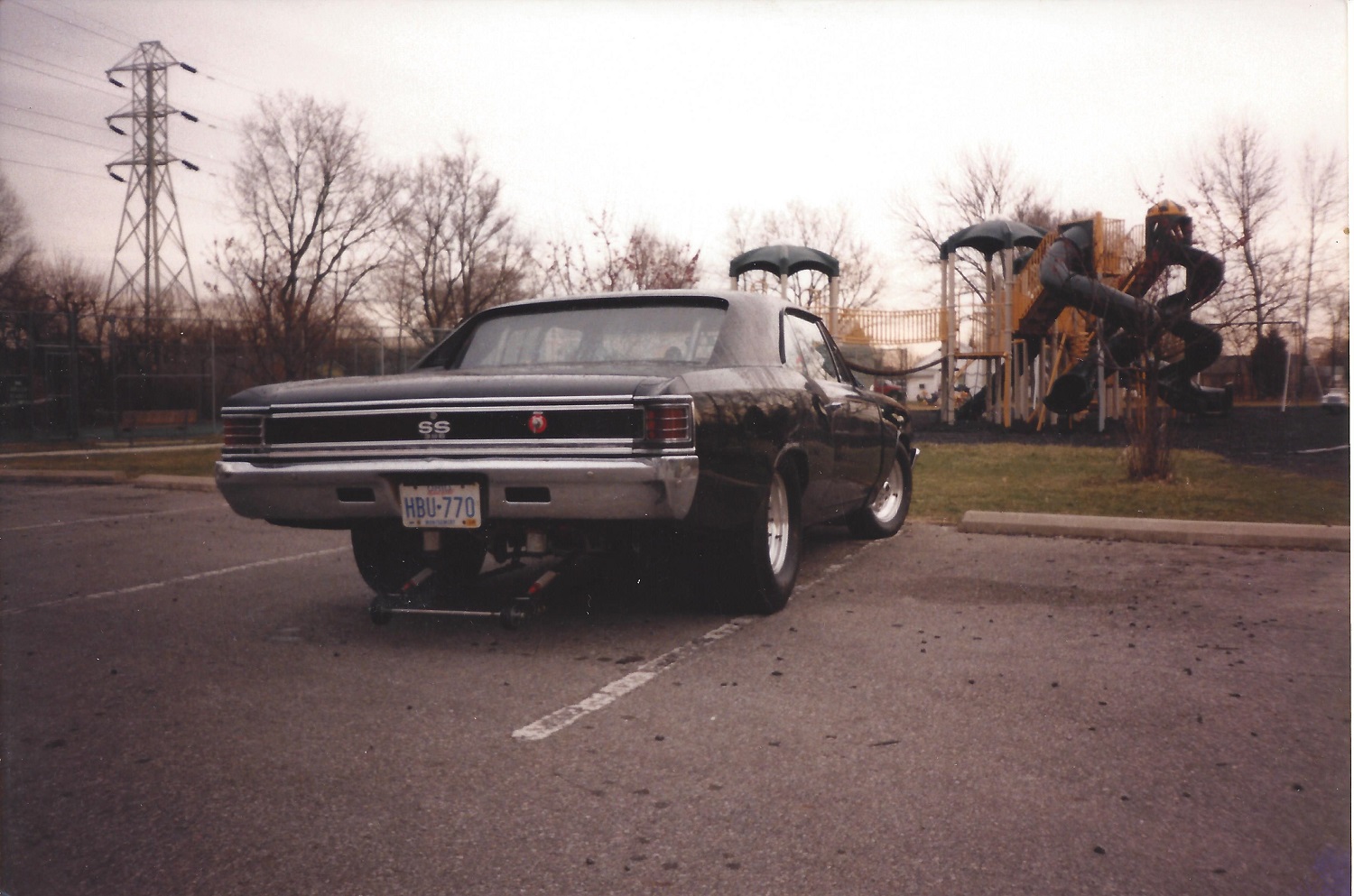 I purchased this Chevelle back around 1991 or 1992. I found it in our local "Tradin' Post" classified newspaper. It was black on black, and it had a very mild (flat tops, stock 1.94 461's and a COMP 268 High energy HFT cam) 327 with a QJet on an OE iron intake, a Saginaw 4 speed and a 12 bolt with 4.10 gears.