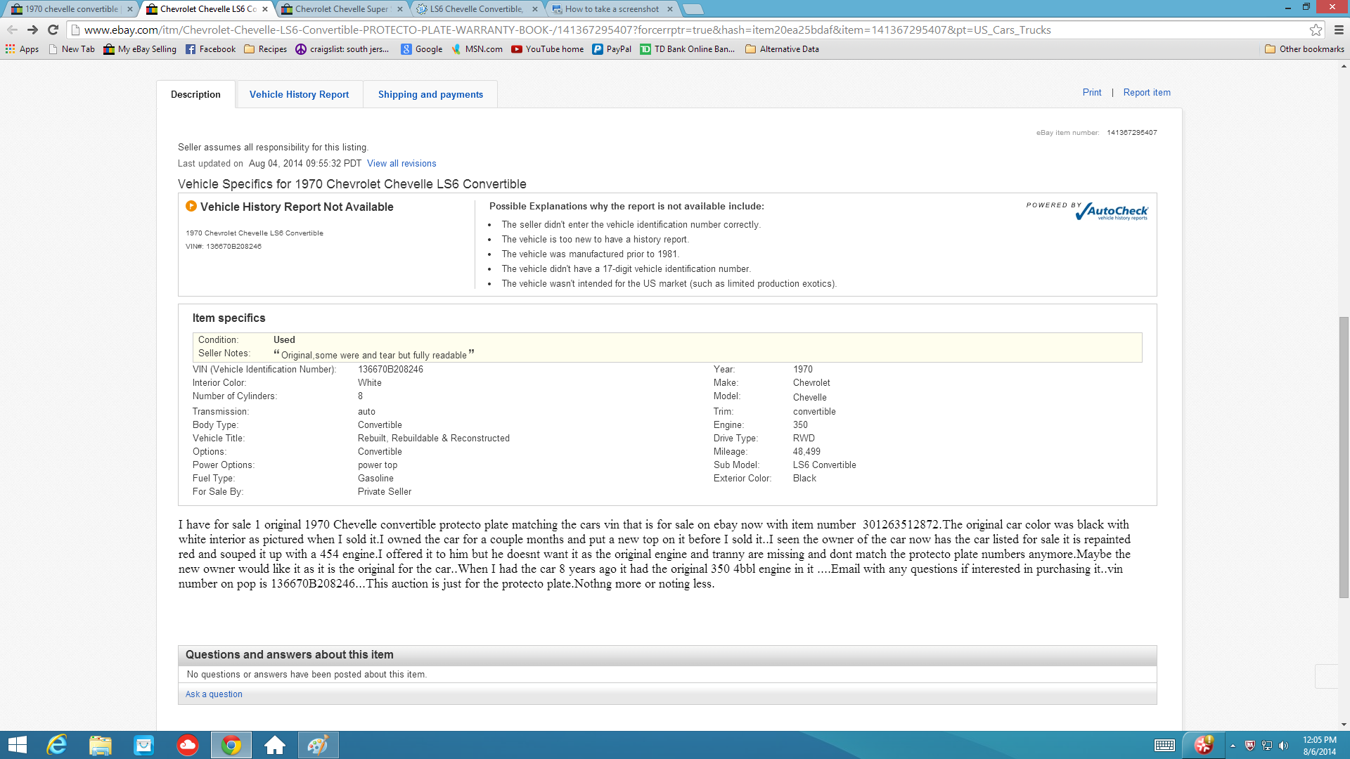 Some entertainment for you guys. One seller is claiming to have an LS6 Chevelle convertible, and the previous owner has its original protecto plate for sale on another auction proving it's an original 350 car.