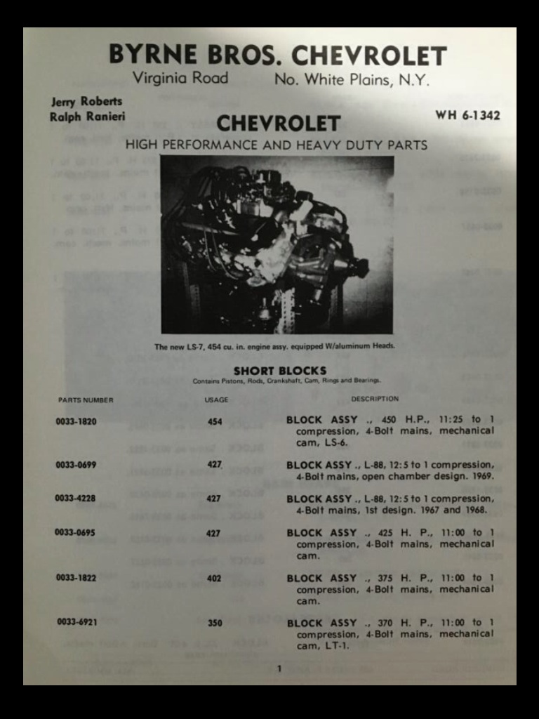 I am looking for any info I can find on Byrne Bros Chevy White Plains NY. I just bought a 1969 Hugger Orange X77 that was original bought at Byrne Bros. I have the original bill of sale when the car was purchased and it states its a "Used on track" car and seating capacity "2". Car has never seen the street and was always a racecar. It is a functional cowl hood car with console delete,spoiler delete,radio delete. I found a very old crank trigger set up in the trunk,which I have never seen before,it has the motion style rear end cover and a very old Moroso Mechanical Tach. The stock gas tank had each end cut off and flipped inside out and welded back in to the tank to clear the inboard mounted leaf springs,not a job done by an amateur. I have seen many forums discussing Byrne Bros had a in house Z/28 Racecar that matches this cars description. I am wondering if this is the car,they didn't sell it until 12/1/70 and it was sold as a racecar. Any help would be great.