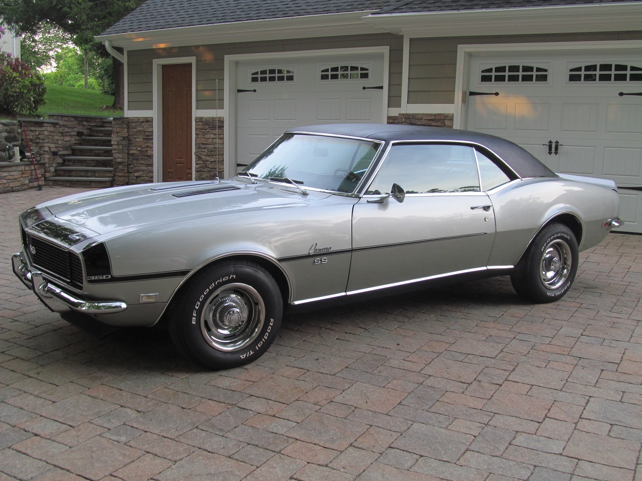 1968 Camaro. Following options Ralley sport,super sport,vinyl top,full tinted glass,front b grds,rear b grds,spoilers f and r, 12 bolt posi 331, Muncie m20 4 speed,power steering,windows,brakes,4 piston power disc brakes,factory ac,TILT,wood wheel,tic toc tach and gauges,console,buckets,rear defogger,fold down rear seat,4 speaker console multiplex. Deluxe interior. Nicest original deluxe interior Ive seen. Much nos was used when it was restored,original Harrison radiator and tag,nos shroud,real wood wheel not repro,disc ralleys,seafrost green/black/black Mint trunk ,nice engine compartment,has chalk marks,tags and marking s on chassis. Original dated seat belts Good looking car was off frame 10 years ago and not really driven