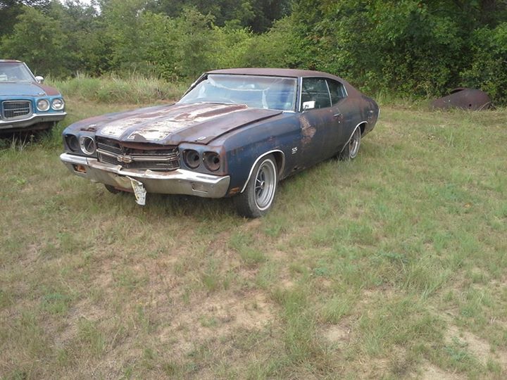 Yard find 1970 Arlington Built Fathom Blue 1970 Chevelle Super Sport. Been sitting in same spot since early 1980's. True numbers matching drivetrain 396 w/th400 w/12 bolt w/AC & P/S & working flapper hood w/Black Bench seat & column shift. Clean Texas title. Most likely still holding it's buildsheet somewhere,like under the driverside floor sound deadner,where most Arlington builds have been found. Located in Pauls Valley,Oklahoma call or text Andy 405-255-0365. $7,500 OBO |