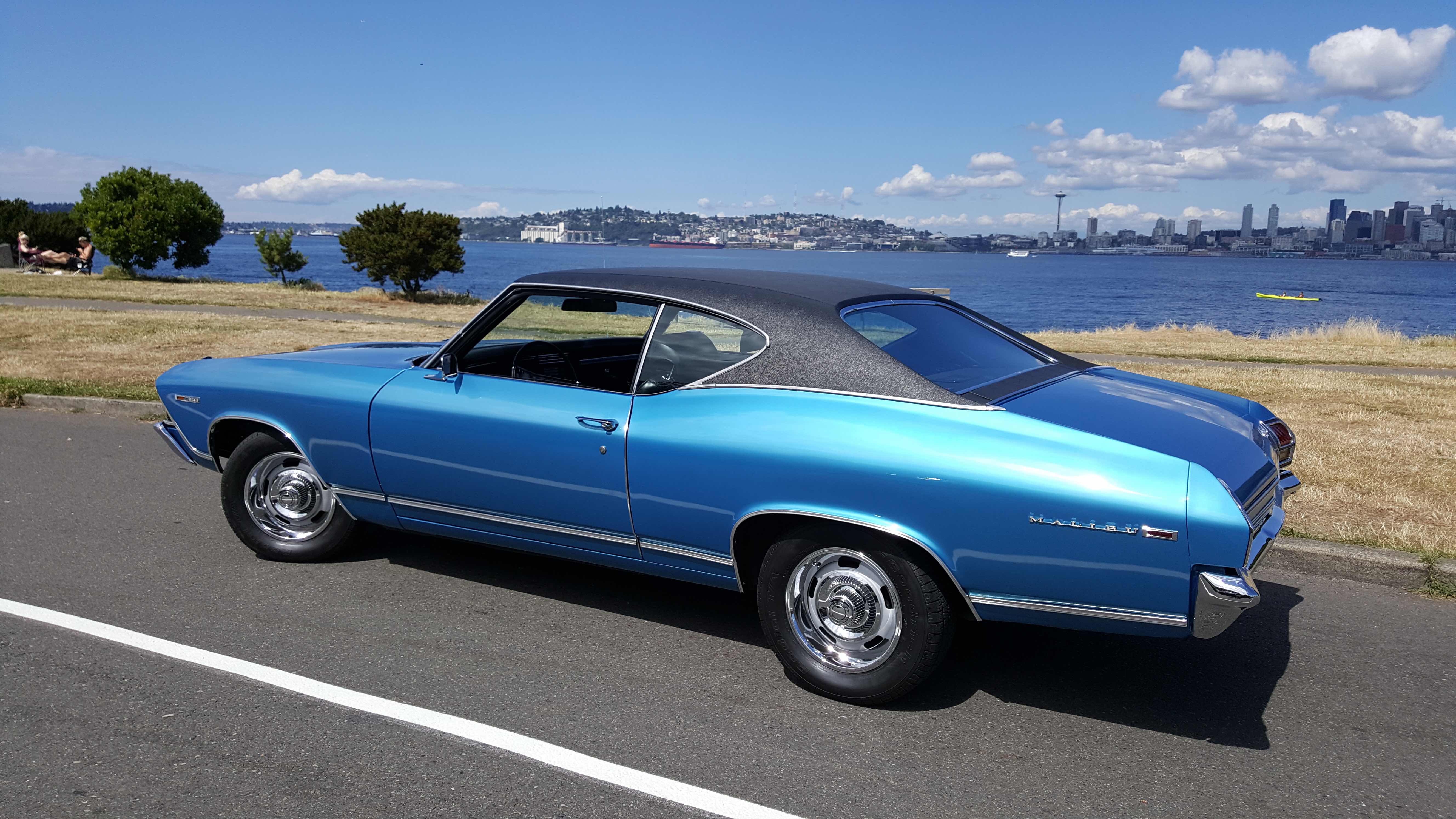 Listing for a good customer who has decided its time to finally let a family heirloom go: 1969 Chevrolet Malibu, original 300hp-350cid / M20 4 speed / 3.73 posi 12 bolt car, Lemans Blue with Black top and Black bucket seat interior. His Dad bought it when it was a year or two old, and it has been in the family ever since. Beautiful car, nicely optioned with tilt column, console, tach/gauges, power steering, power disc brakes, Vigilite fiber optics, lighting group, 14x6 YW Rally wheels (original spare, but car now has '70 Monte 15x7 YH's on the corners with BFG TA 235/60/15's). Repainted once in the 90's by the owner (original Argent lower paint omitted), still looks GREAT. I don't think the trunk has ever had moisture in it, everything is pristine. 101K original miles, original L48 engine was replaced years ago by a RHS 350 (Comp 294, Holley 700, headers, etc). Original M20 with VIN stamping still intact, Hurst shifter replaces original Muncie unit. Owner is an engineer, and it shows in the care and condition of the car. Late production Kansas car with Body Broadcast sheet. Perfectly optioned when new as an incognito gentleman's muscle car. $25,900. Contact me via PM, email, or call Tom (me) at (too oh six)459-1563 for more information. The car is located within about 10 minutes of Seattle's main airport if you'd like to fly in and check it out.