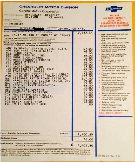 How the heck did you get 15x8 wheels from the factory on a '74 Malibu? 15x7 was the standard RPO rally wheel, right? AS far as I know, Corvette was the only Chevrolet to get a 15x8 from the factory.