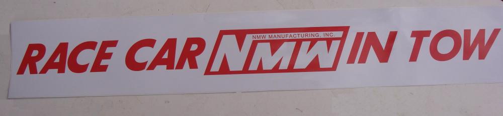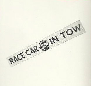 RACE CAR IN TOW- vintage 1960s/1970s style back window decal/sticker. Back in the good old days when everyone flat towed there race car to track , everyone used shoe polish or had a decal in back glass calling out a car being towed. These are accurate in detail too original in size, color and design.Measures 4" x 26". Available in Champion spark plug , Holley carburetor , or NMW manufacturing. These are high quality professionally produced- not a cheap ink jet copy. You will not be disappointed. Limited quantities produced.$11.00 each plus 4.80 shipping - paypal or money order