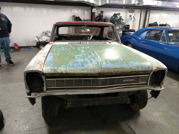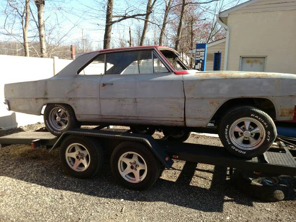 66 Chevy II project car no motor trans or interior has some rust on front floors, not all rusted out though, very solid car other than that. Frame rails look good great for a pro touring car first 6000.00 call me at 410-320-7018