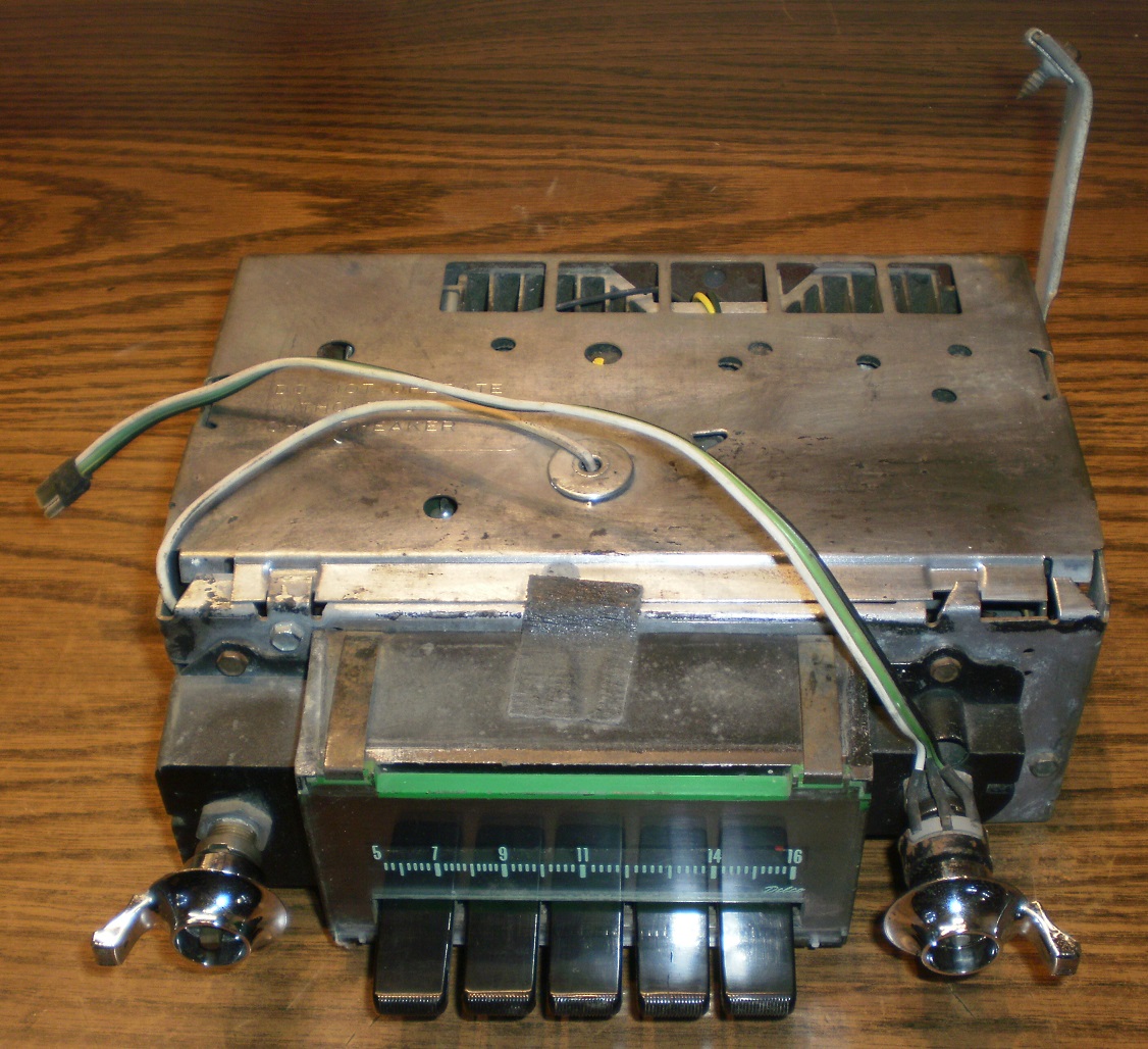 A nice solid working AM Radio with the tough to find U80 Rear Passenger Speaker optioned Fader control. Includes both GM inside knobs and GM bolt dash keepers. Side label has flaked off. Seller told me he tested the radio and it works like it should.