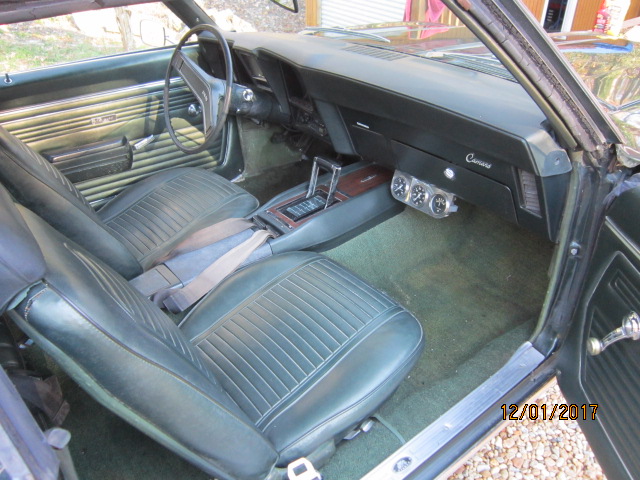 Up for sale is my 1969 rs camaro 327/210 hp with turbo 10 bolt original yj ralleys and rings ,caps,rear end floors never was undercoated and they are pretty mint, eric garner exhaust, one repaint, pretty much all original interior, all original body panels except the driver side quarter panel all original bumpers and yes the rs headlights do work, open and close like they should. This not a big muscle car but iam sure some one is looking for one. Any questions please call foster at 757 377 4839 , merry Christmas 22500.00 SOLD