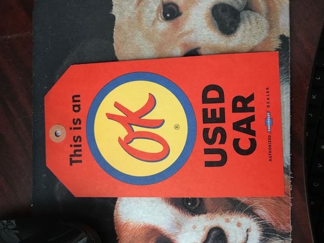 This is an OLD Original Dealership OK used car tag that would hang from the rear view mirror in the car lot. NOT a reproduction!! Great for car shows. $25.00 shipped