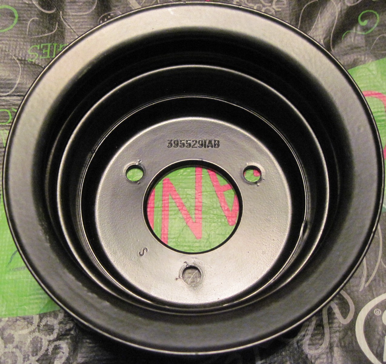 Real GM pulley. No pits in between grooves. Not bent, twisted, welded or extra holes. Has been powdercoated semi flat black. Please look at the pics.
