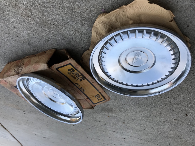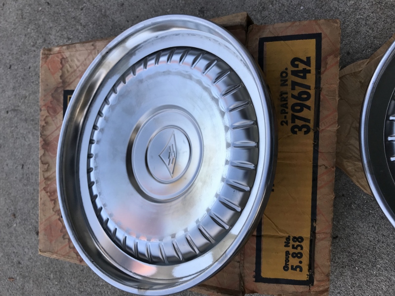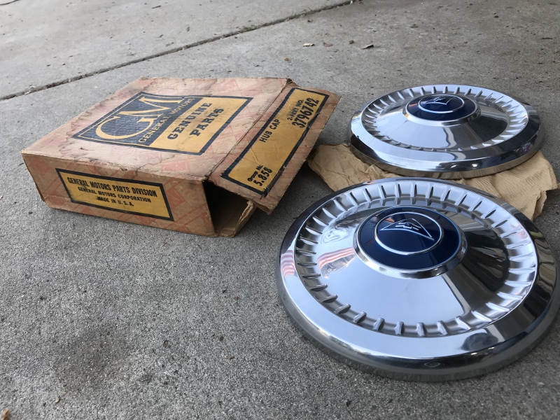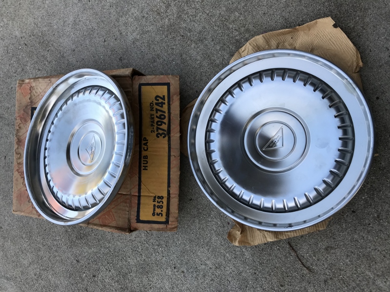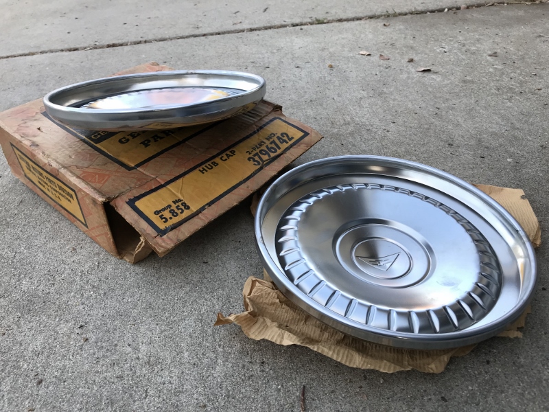 Here they are, 2 NOS Corvair hubcaps as shown. $75 shipped to the 48. Thanks, Anthony Last edited by AnthonyS; 04-15-2018 at 06:33 AM. Reason: lower price |
