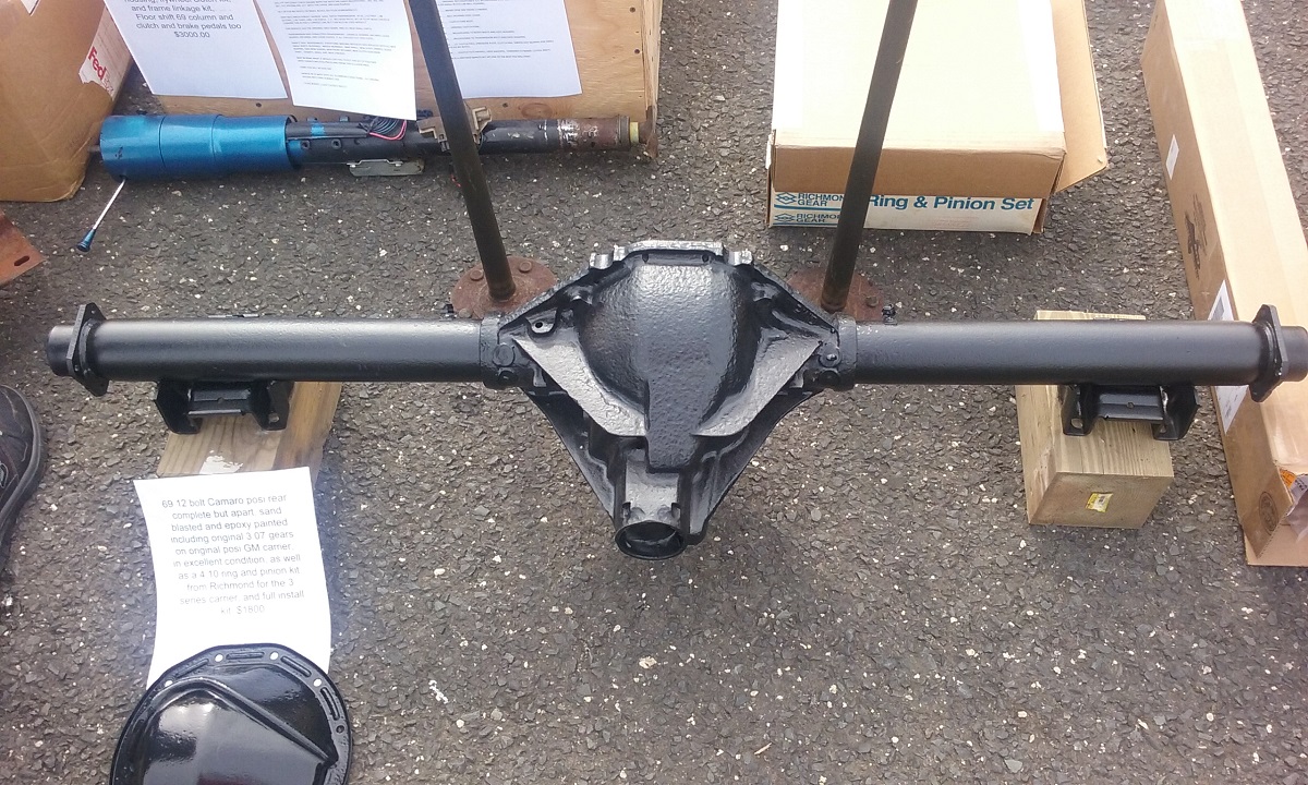 3.07 factory posi, gears are still on carrier complete rear including backing plates but apart 4.10 Richmond gears in box for 3 series carrier Richmond install kit Original GM Axles and cover Rear bare housing was blasted and has been epoxy painted New rear brake lines included Assembly required Cash and Carry $1800 Located in Medford Lakes NJ zip 08055 |