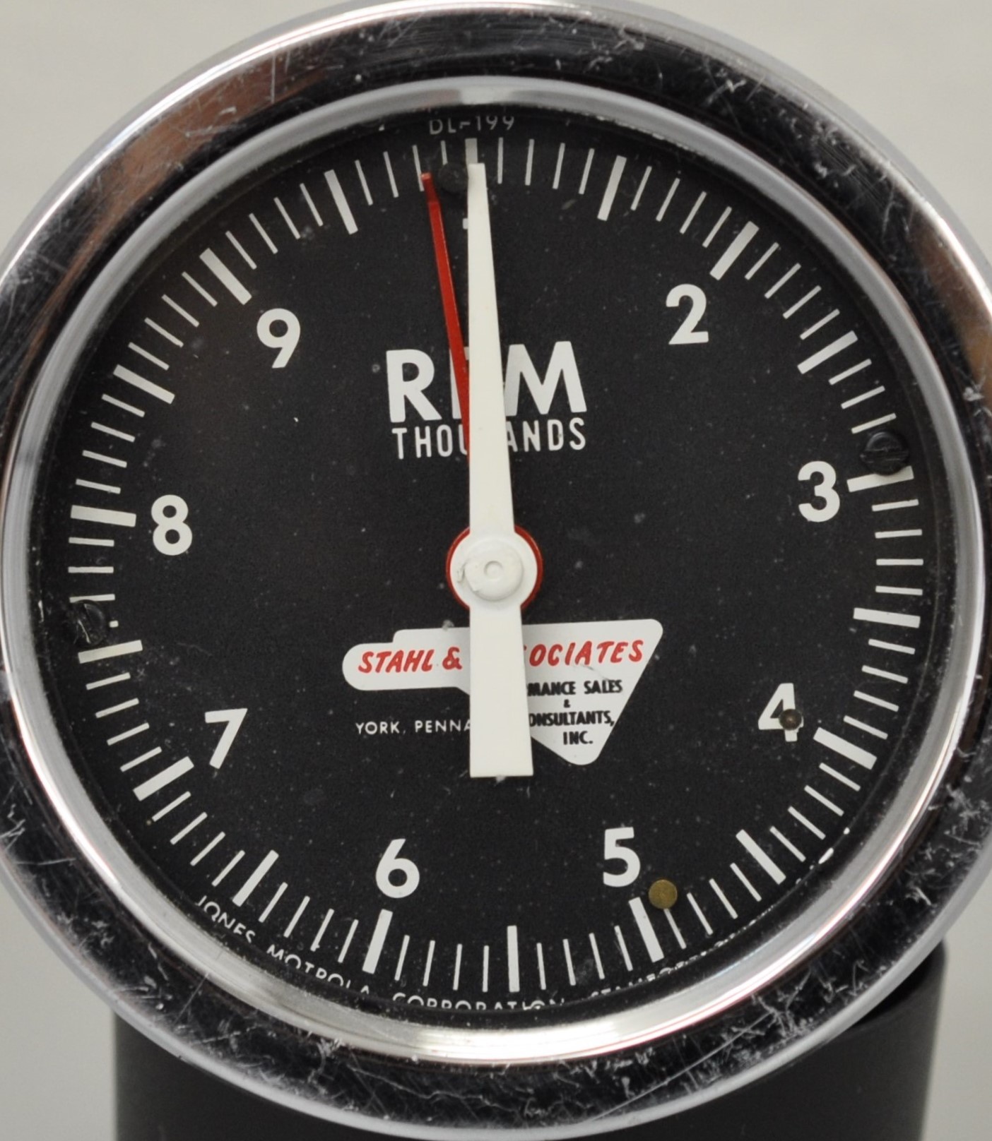 Stahl Tachometer 0-10,000 RPM, as is condition. Chrome outer with black face, white numerals and red tell tale.