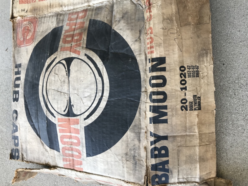 H Everyone, nice find here - an original set of NOS genuine Cal Custom MOPAR Baby Moon hub caps - box says Dodge 1957-1967 Plymouth 1955-1967 Rambler 1960-1967. Which leads me to believe they might be dated 1967.