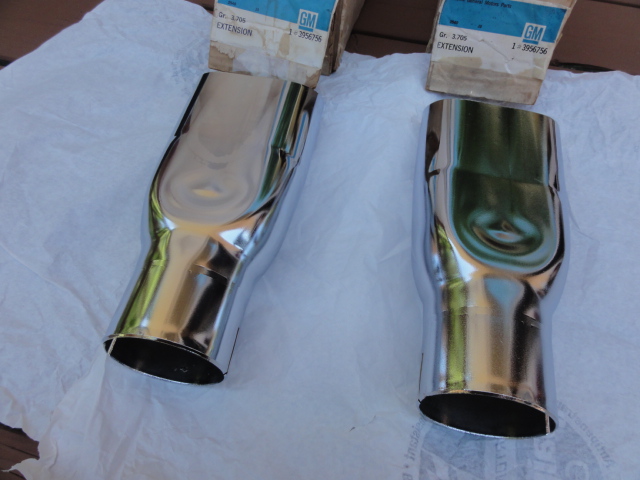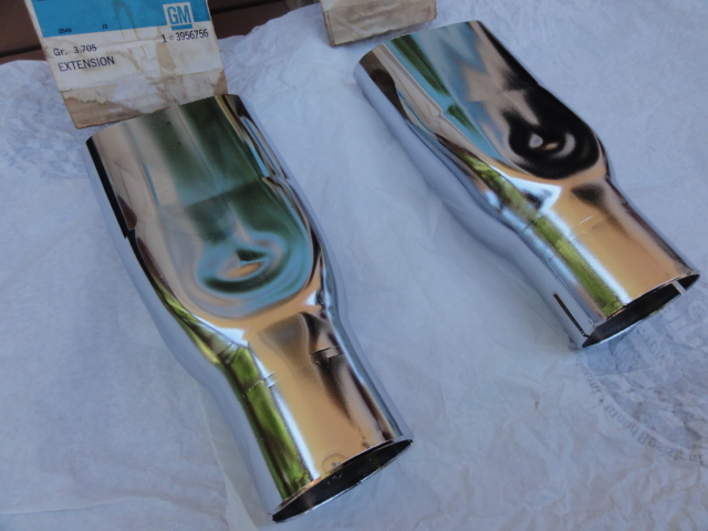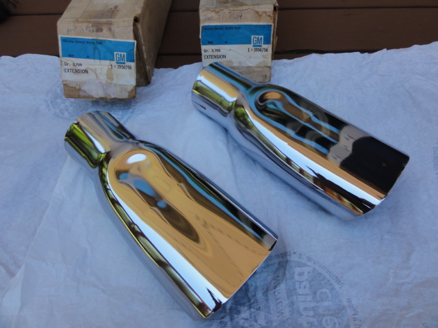 Nice-Nos 1969- 1972 Chevelle Exhaust tips 3956756 no part number on tips factory assembly line correct. Boxes dated 6-21-78. Good for late built 69 chevelles. Chrome is typical nos factory and flaws. 950.00 plus shipping.Call James. 845 705 5211