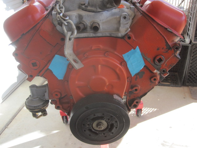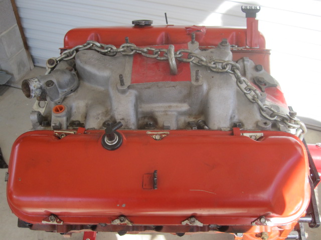 Selling a complete motor intake to pan that came out of a 66 Vette a few years ago and has been sitting in a garage. The 3963512 block is dated I69 and is stamped CE069263. The heads are 3873858 dated B156 and 3964291 dated B471. Has a 66 intake 3885069 and corvette valve covers with flat spot for booster. I removed the pan it is spotless inside and its a 2 bolt main with a windage tray. The pan has a trap door and dipstick. It has a 6223 crank and it appears to be pretty fresh .030 over from looking underneath. I didn't remove any main or rod caps I'd assume its turned. There is one rocker arm as shown that the cup part where the push rod goes into has broken off. Other than that it appears in really good shape. I would assume it needs new gaskets and maybe freshened up. The price is 4500 paypal ff or money order plus shipping costs. I will crate up and deliver to a terminal in Tucson. Larry 520-349-2337