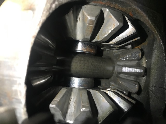 Before going any farther go ahead and take the rest of the gears out and see what the case looks like inside. I could be wrong about the wear on the case, and if I am then the fix is easy. It looks like one of those thrust washers has been replaced at one time with one from a Eaton Posi, which is why it fell out. When you get the axle gears out look at them and see if they are worn or turning blue. Also look in the case at the area behind all 4 thrust washers and see if it's worn. If your case is good then I probably have a set of gears.