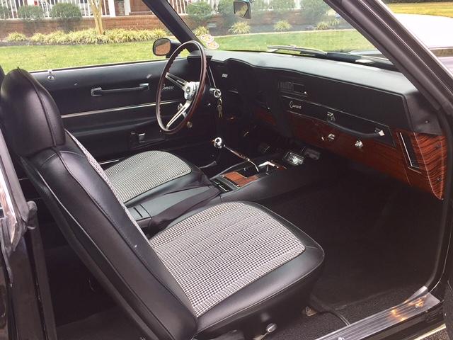 If it matters, the car was originally Glazier Blue with a Blue Vinyl Top and Standard Interior and Factory endura bumper. As you can see, it has a FLAWLESS LAZER Straight BLACK Paintjob with Matte Black SS Hockey stripes, New BLACK Vinyl Top, and a completely NEW Houndstooth Interior!