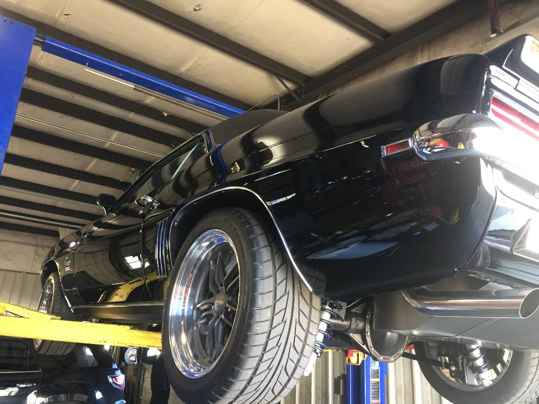 GM 12 Bolt, New Mosier Axles, New Richmond 3:73 Posi rear • Al New Suspension: • Speed Tech front tubular control arms • Speed Tech front Swaybar • Speed Tech AFX tall aluminum spindle with Z06 Corvette hub • Viking Coil-over shock/springs (front) • C5 Corvette disc brakes with vented rotors • Detroit Speed Brake booster/master cylinder • Manual proportioning valve • IROC quick ration steering box • Ridetech 4 Link with Coil-over shock/springs • C5 Corvette disc brakes • “Tanks” Stainless Steel baffled tank with GM “in tank” fuel pump • II Much Fabrication carbon canister fuel ventilation system • Magna Flow Stainless exhaust routed as factory (tailpipes exit rear body area) • Budnik 18 X 9.5 custom offset with Nitto 555 tires • Painless wiring • Dakota Digital instrumentation with console Gauges (Factory resemblance) • Detroit Speed Electric headlight door conversion •