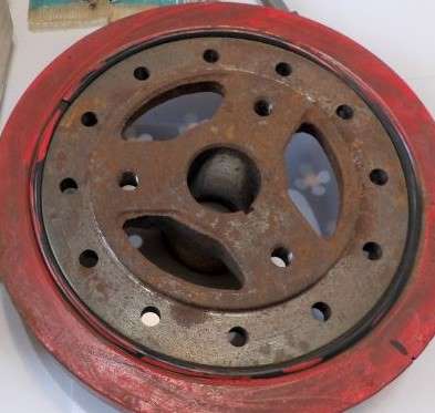 Nos gm 1969-71 small block balancer damper. Gm part # 6272222. This is a 8 inch damper Balancer surface has some light surface rust. It still has the protective cardboard sleeve for seal area on it. So its perfect for the seal. Gm box is brittle. 150.00 Buyer pays shipping 815-483-5584 Brian