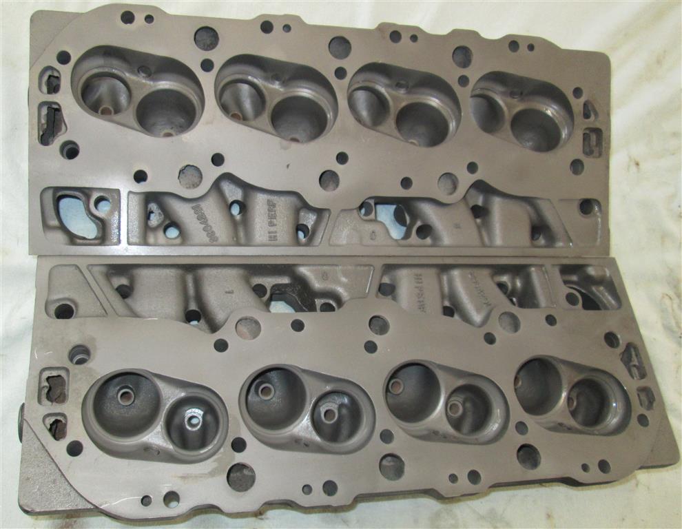 These heads are in very good original condition as shown. These just came out of a long time collection and have been in cool, dry storage for decades. Both are stamped Traco with the same job number of "524" as shown. The heads are in bare cast iron finish and look amazing. The only flaw I see is a small crack on a valve cover rail as shown which could be simply sealed, brazed, or welded. All ports and chambers look great. All threads are in good condition with no helicoils or threads inserts. The deck surfaces are very thick so they have not been milled to death. Finding an original matched pair of TRACO heads is unheard of, especially in this awesome condition.
