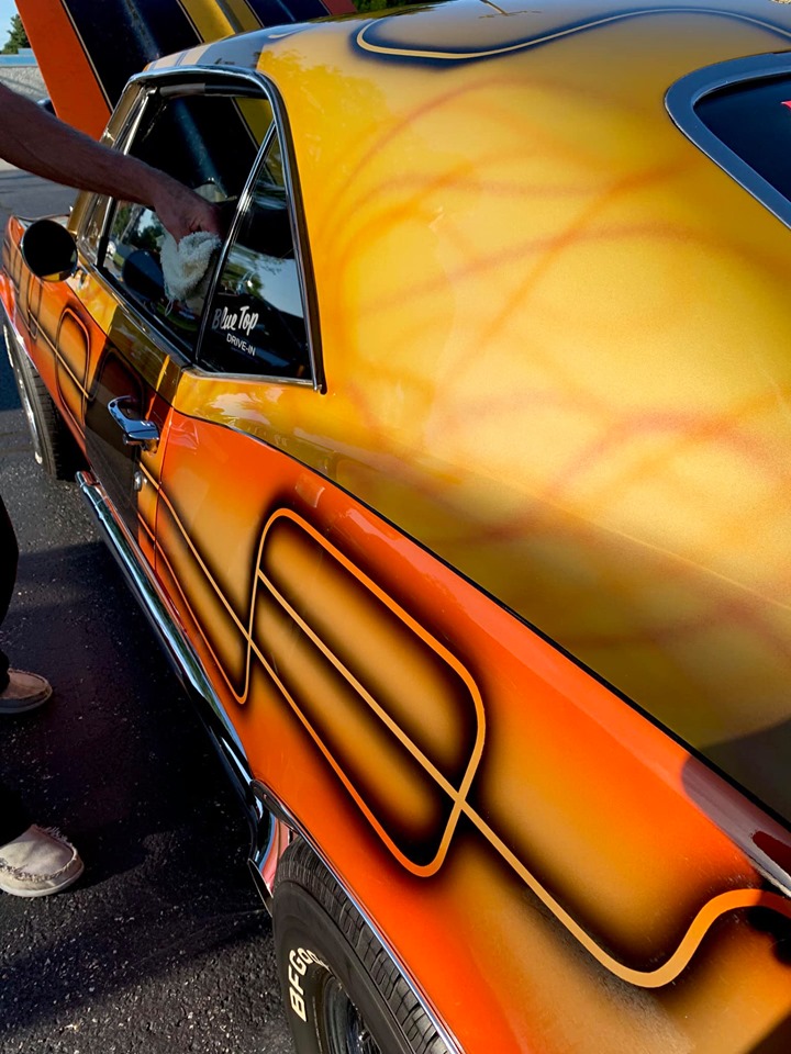 Only thing I would chage on outside is to go with a more "vintage" tire/wheel package. Like Cragar S/S and Pro-Tracs. |