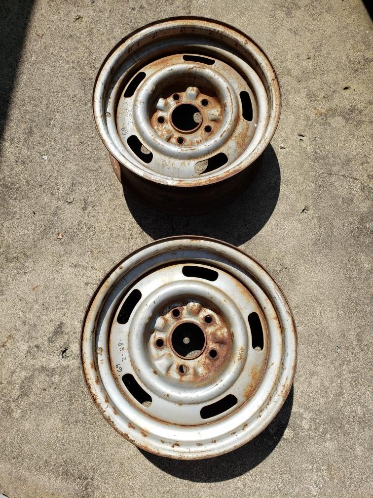 this is a pair of YH code wheels that were on a 69 Z28 I had years ago. they are dated 2 26 9. the one wheel has a scrape on the back side of the lip and a couple of lightly dinged edges. the edges are very easy to fix like this. both wheels roll very straight. both have nice lug holes.