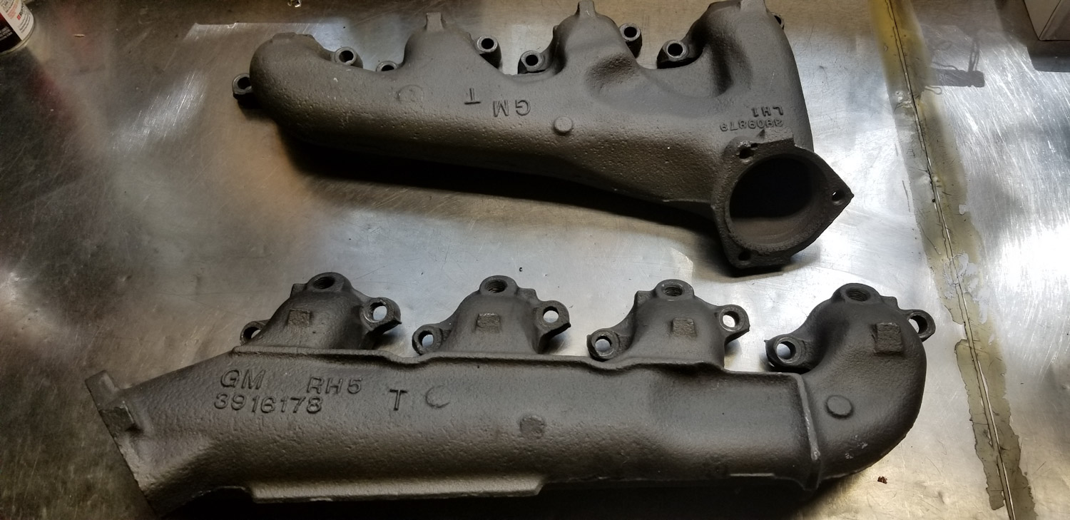 Pair of Big block Chevy exhaust manifolds dated B-10-70 (879), and D-28-70 (178).